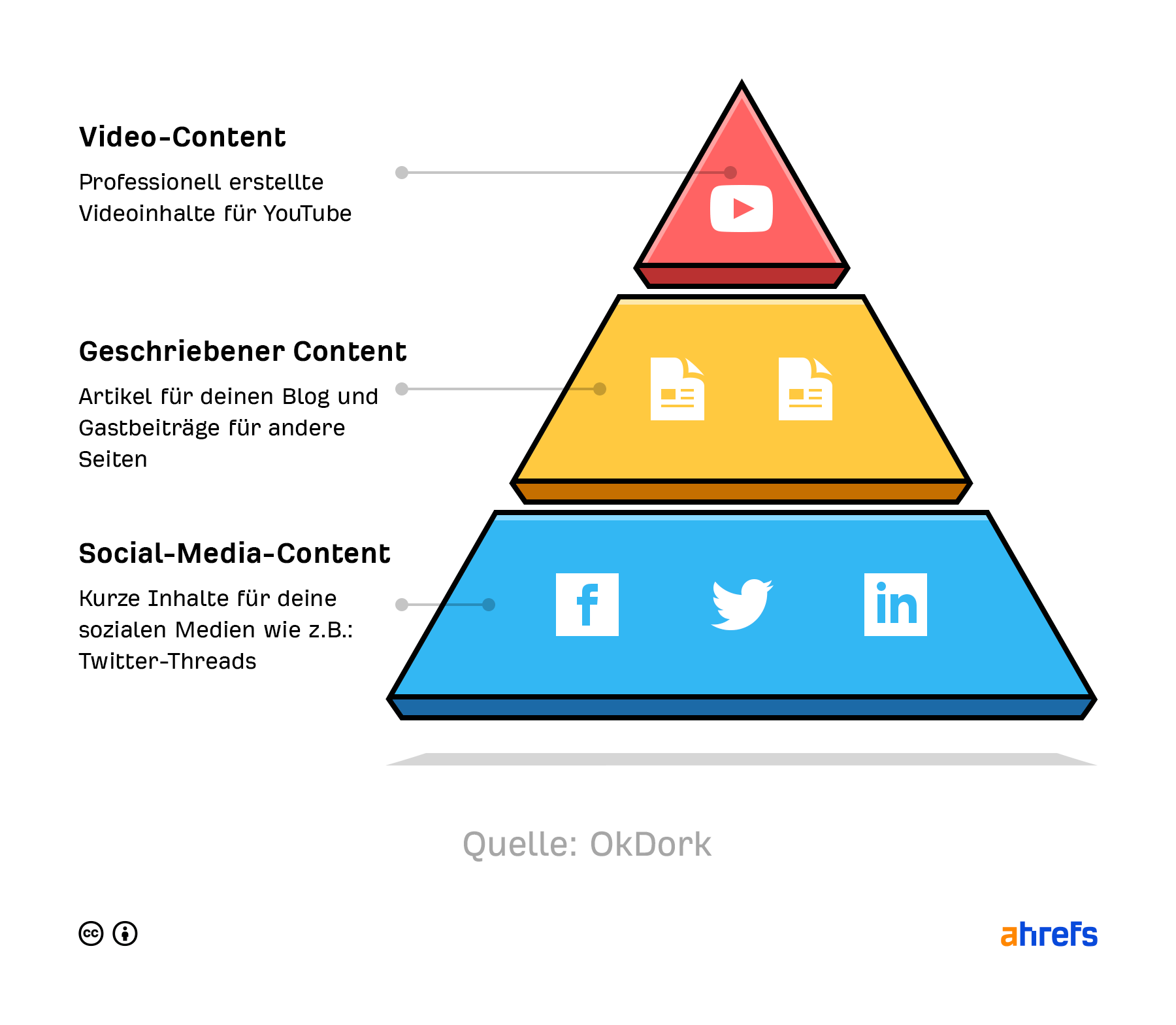 Stell dir das wie eine Pyramide vor. Beginne mit einer Version und zerlege sie dann nach und nach in kleinere Versionen für andere Kanäle.