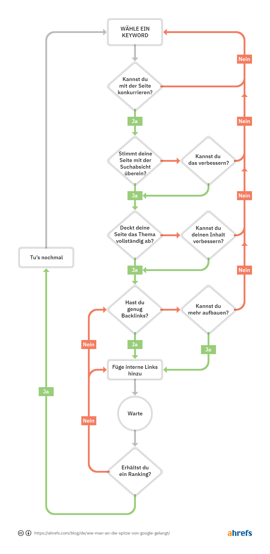 Best Practices und Optimierungen werden jedoch selten ausreichen, um sich an die Spitze zu setzen. Wenn du die Grundlagen beherrschst und immer noch nirgendwo zu sehen bist, gehe dieses Flussdiagramm durch: