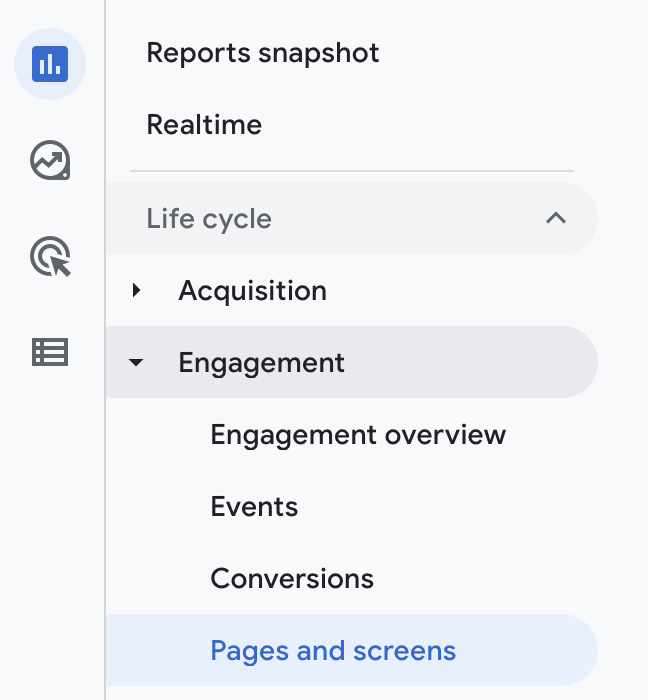 - Öffne den Bericht Seiten und Bildschirme unter Engagement.
