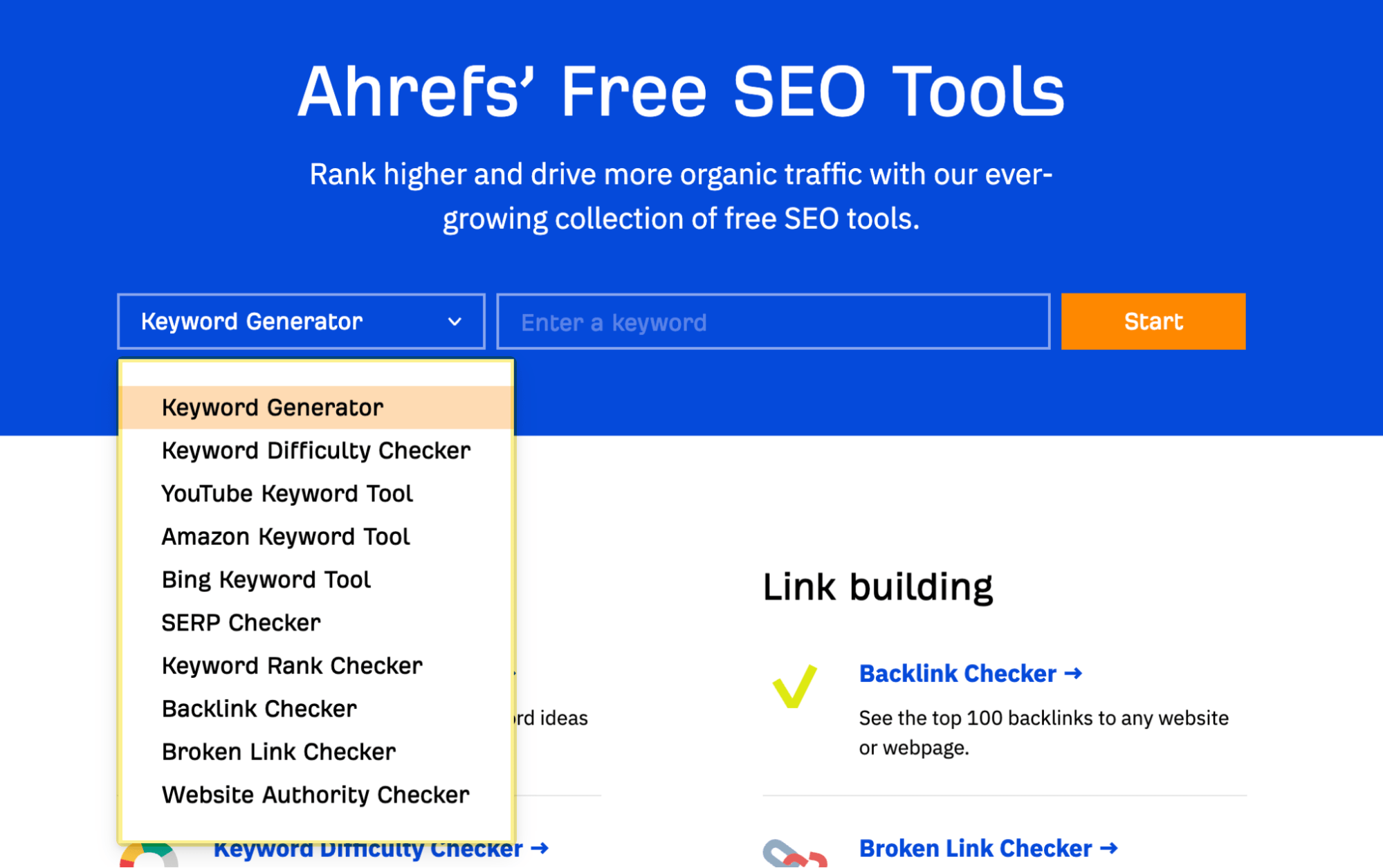 Excluding our free WordPress SEO plugin and Ahrefs Webmaster Tools (AWT), we have ten free SEO tools: