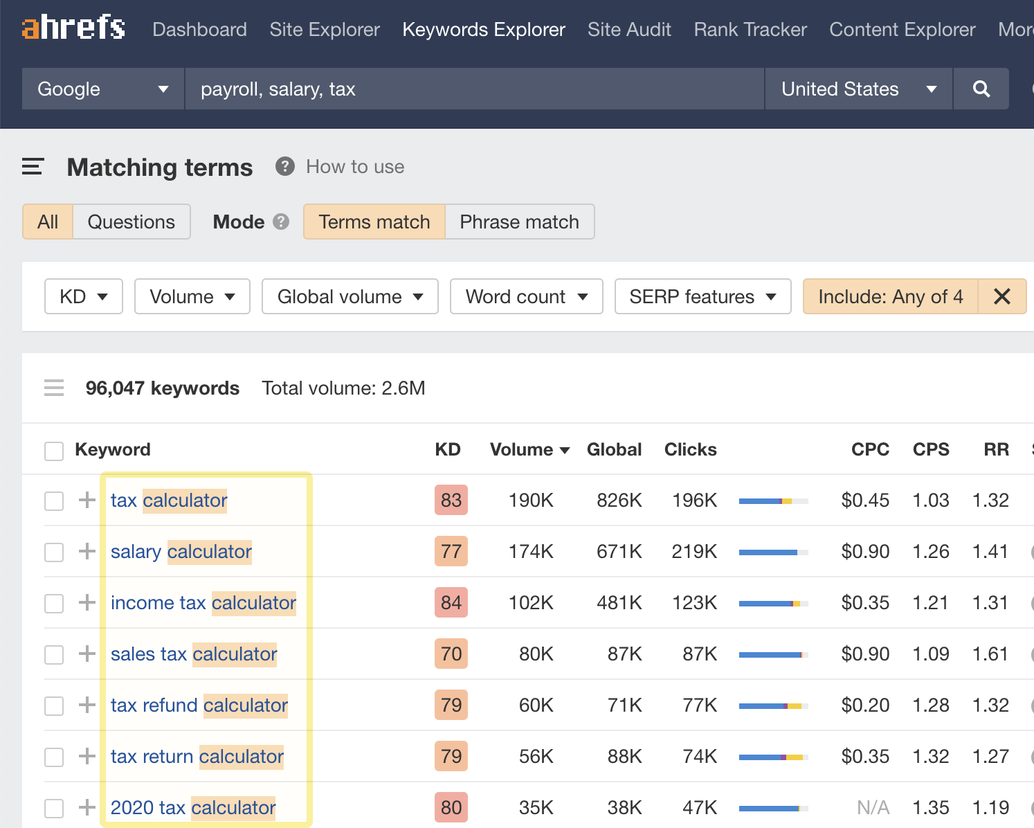 You might have noticed that most of the keywords above have high Keyword Difficulty (KD) scores. If you see the same for your keyword, you’ll probably need a lot of backlinks to your tool before it ranks high in Google.