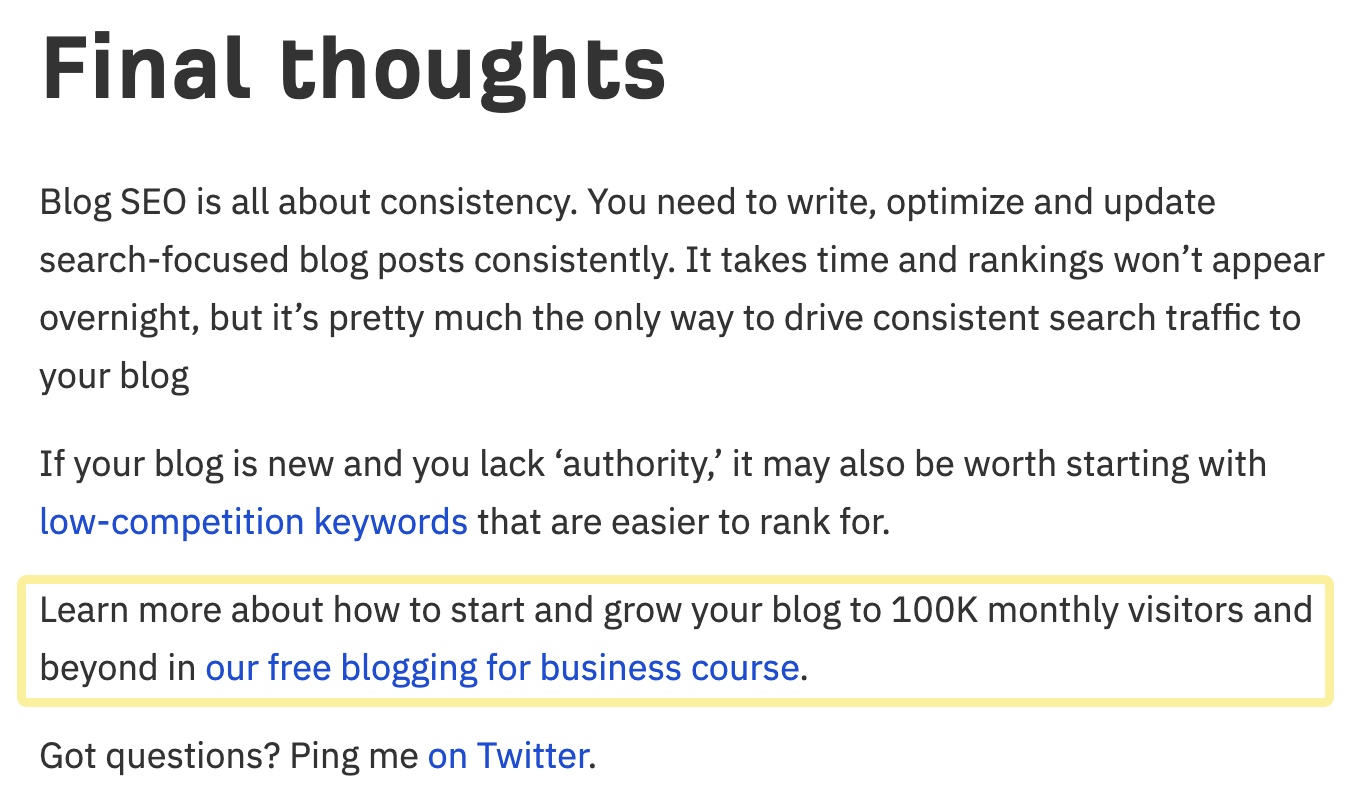Here’s an example from the conclusion to our guide to blog SEO: