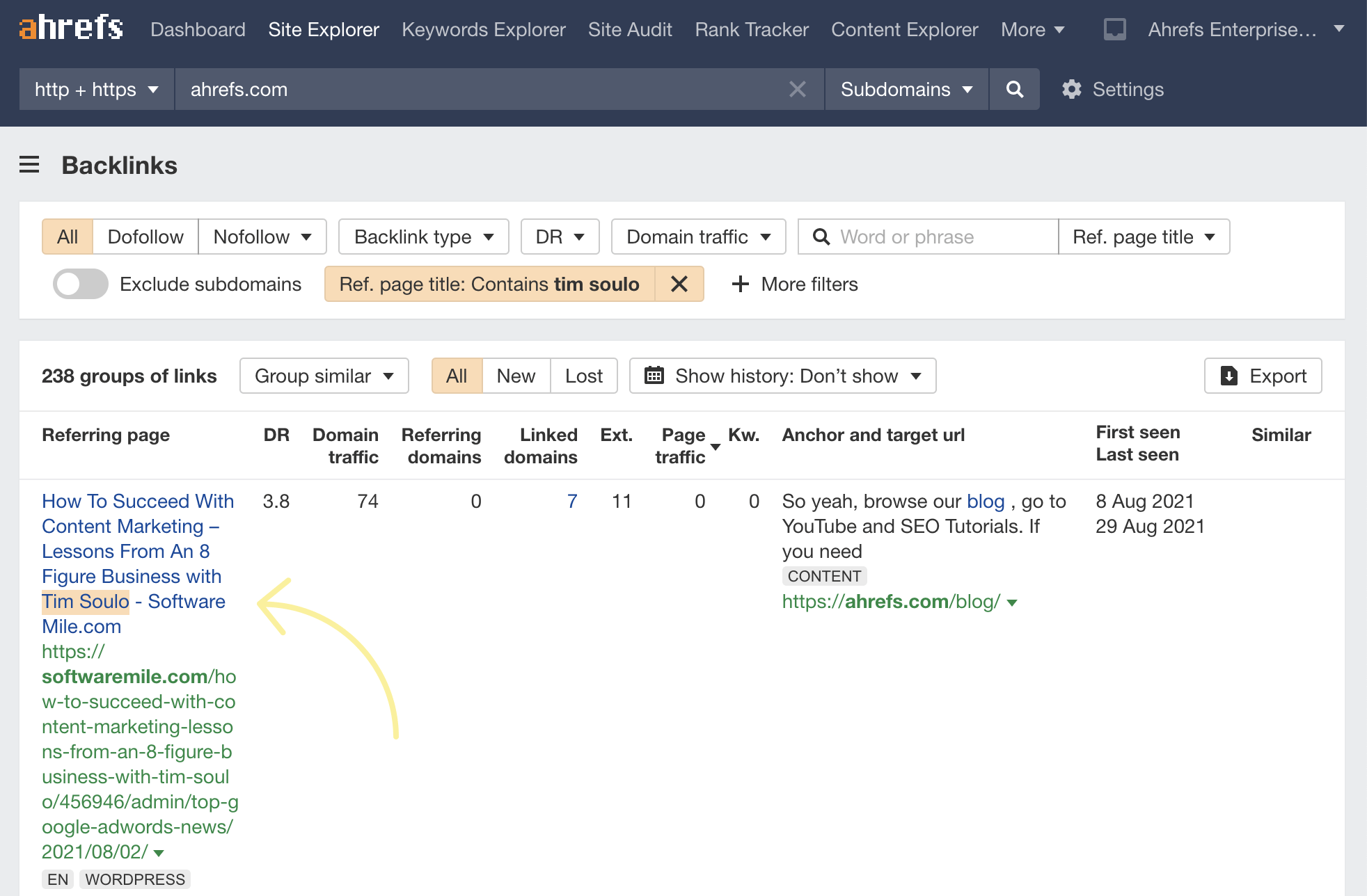 - Paste that person’s domain into Site Explorer