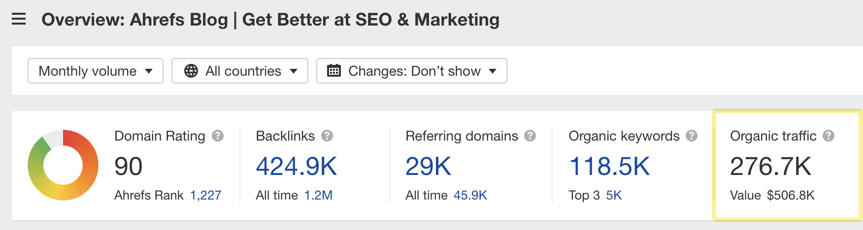The Ahrefs blog gets an estimated 276K monthly search visits:
