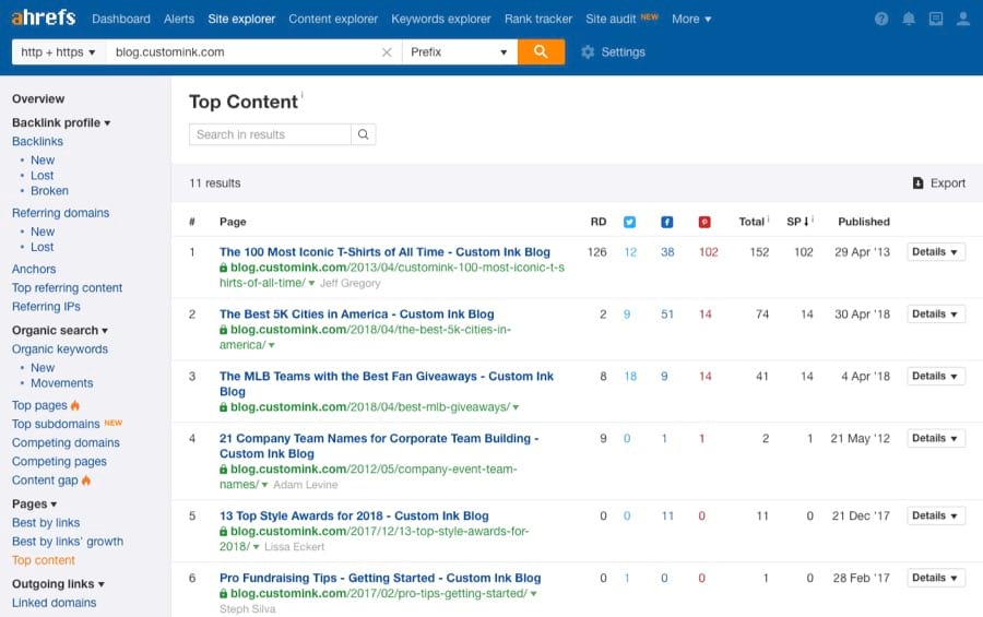 Step 2: Export “Top content” data from Site Explorer for each competitor