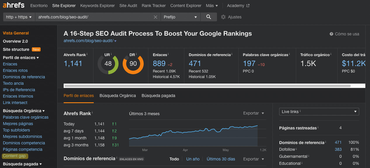 Puedes ver si los enlaces están limitando que tu contenido se posicione comparando tu perfil de enlaces con el de tus competidores.