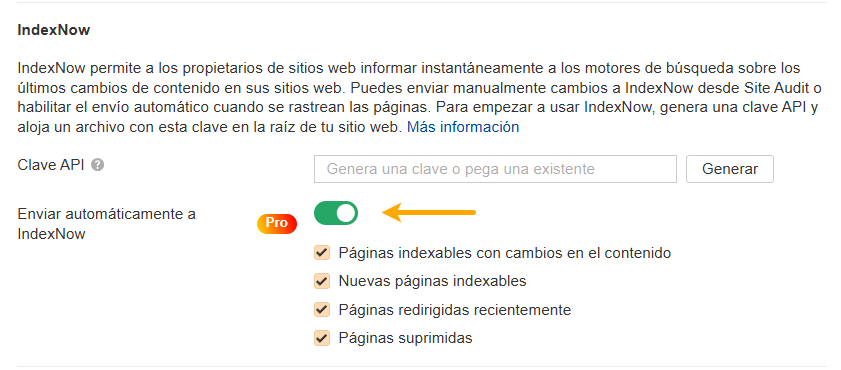 2. Indexación más rápida: Todos los cambios detectados por Site Audit se notificarán automáticamente a los otros participantes, asegurando que tus páginas se indexen más rápido en múltiples motores de búsqueda al mismo tiempo.