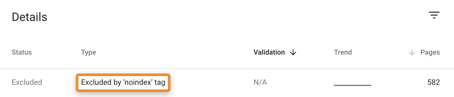 Google te avisa de las URLs noindexed (no indexadas) en el informe de Cobertura.