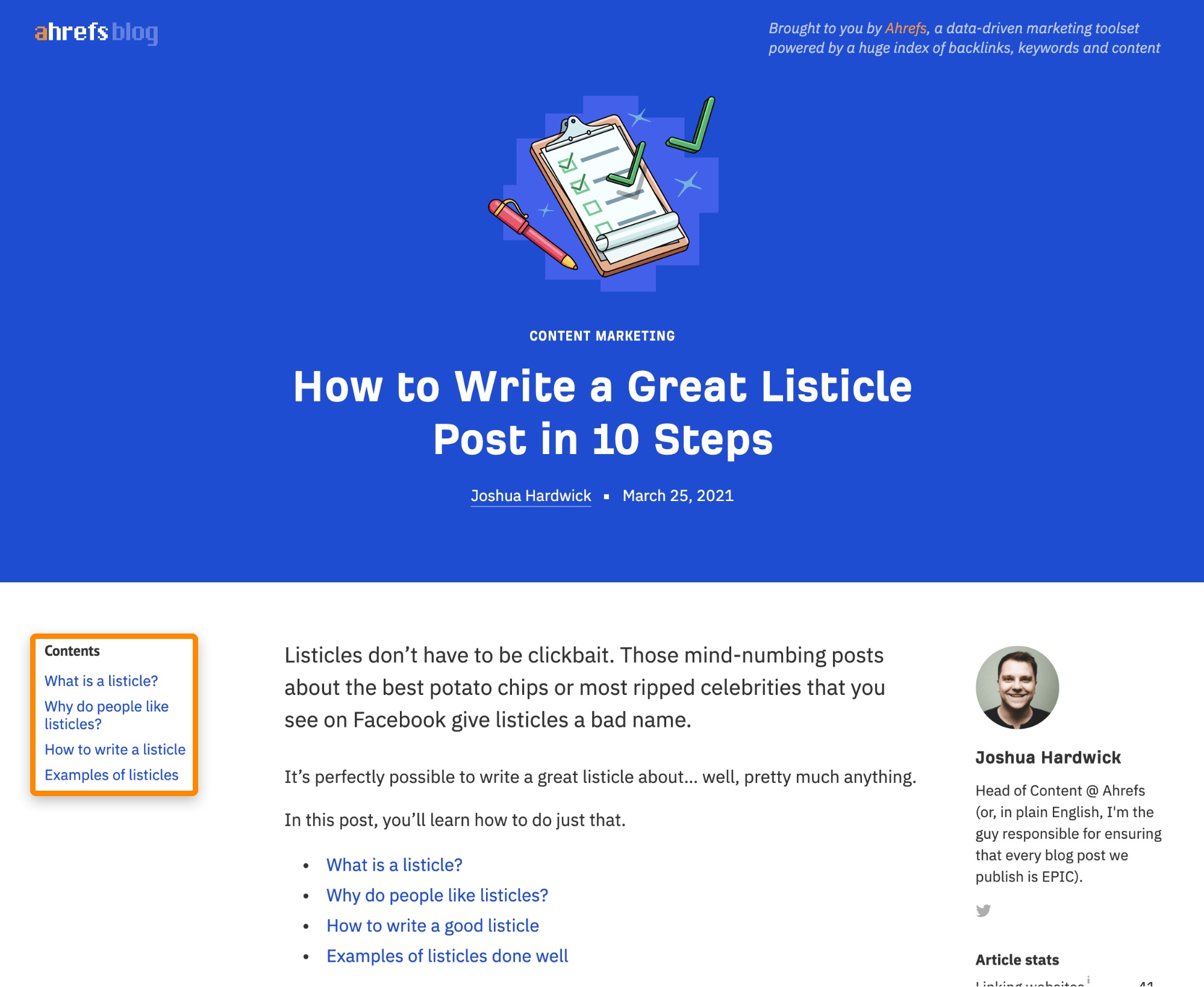 Por ejemplo, aquí va un post invitado de Ryan Stewart en el Blog de Ahrefs: