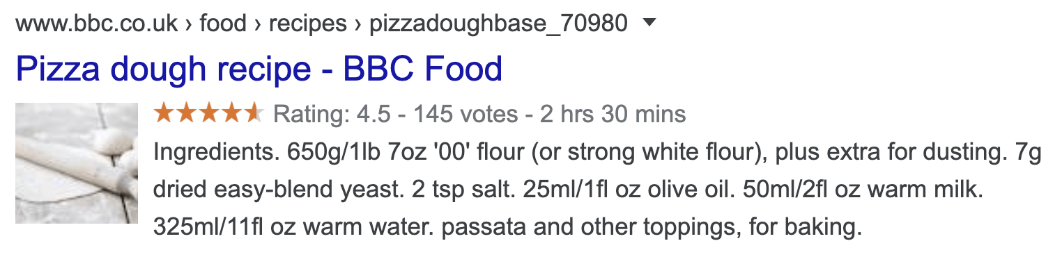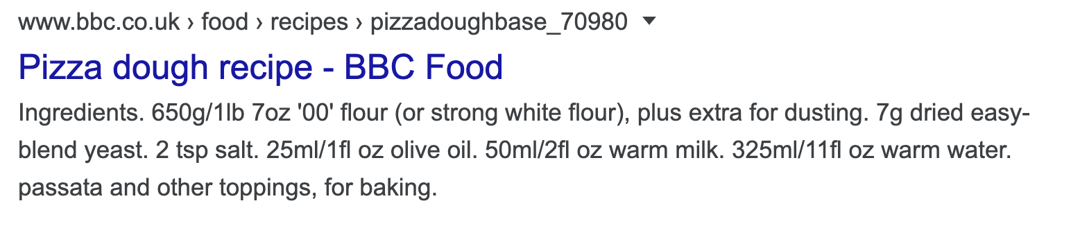 Aquí va una página con marcado Schema que actualmente posiciona en “pizza dough recipe” (receta de masa de pizza):