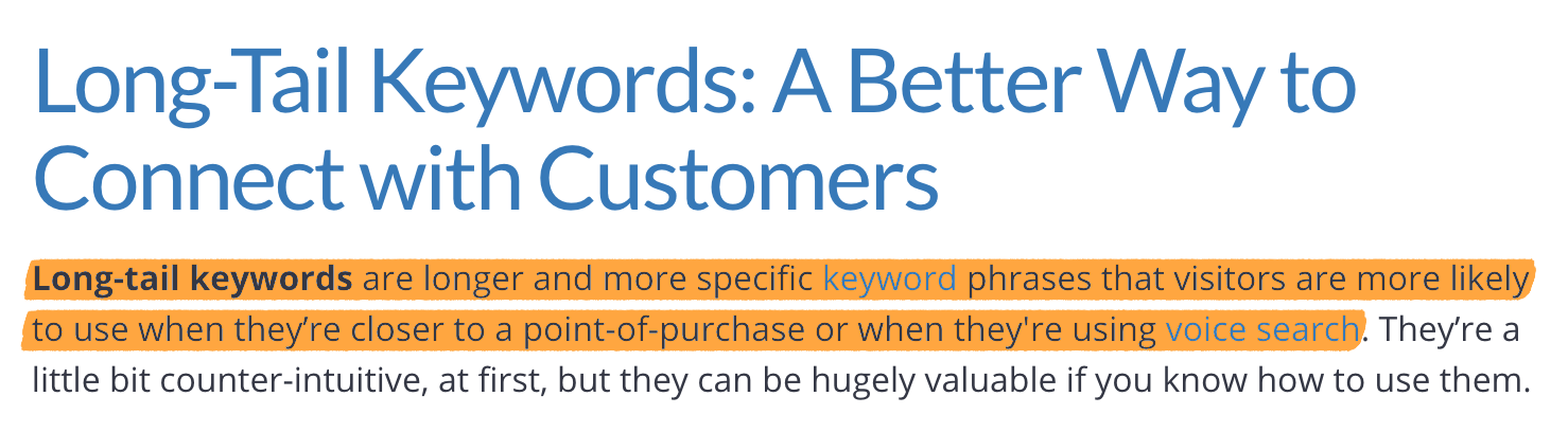 Por ejemplo, aquí tenemos un post sobre palabras clave long-tail (de larga cola) con una definición imprecisa (no tiene nada que ver con la longitud):