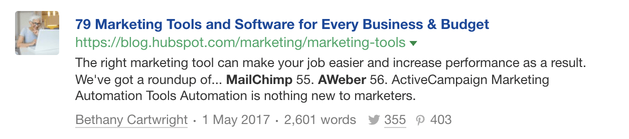 Por ejemplo, si estuvieras haciendo esto para ConvertKit, esta lista de 79 herramientas de marketing probablemente sería una buena oportunidad: