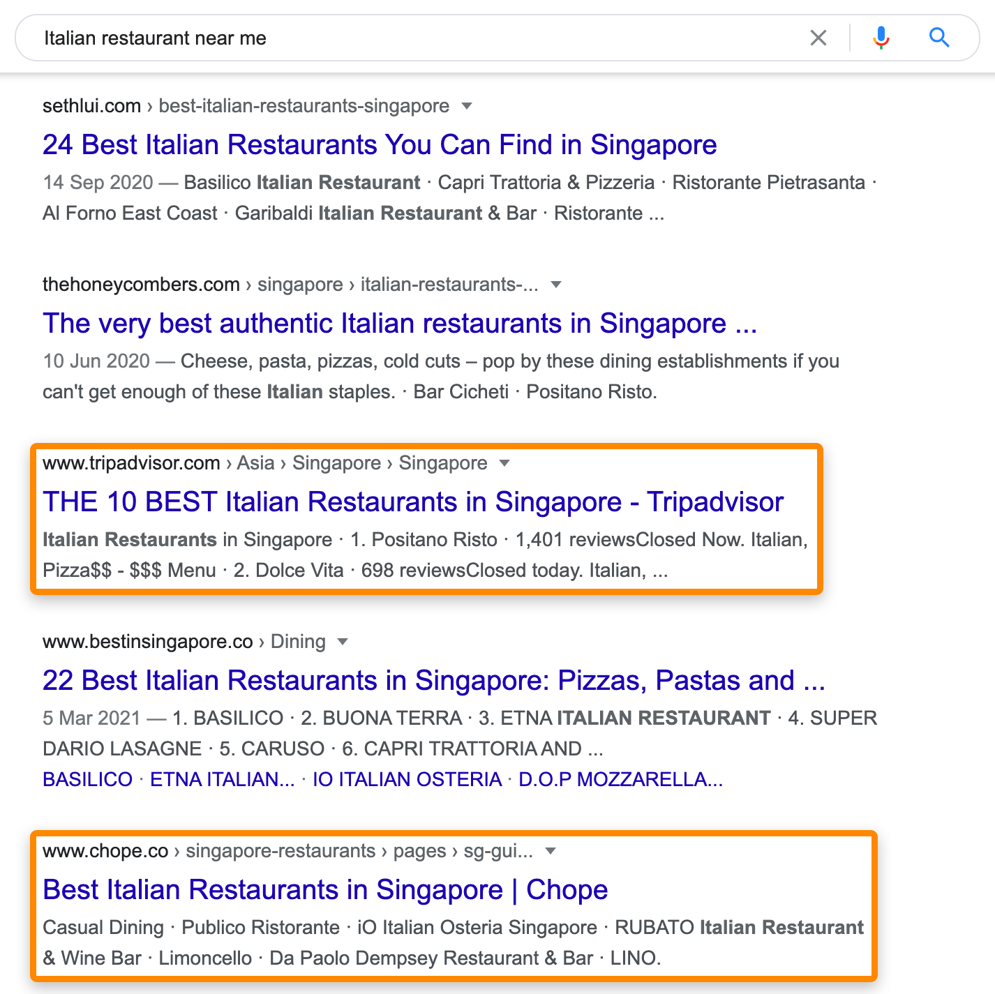 Verás montones de páginas que mencionan a estos negocios.