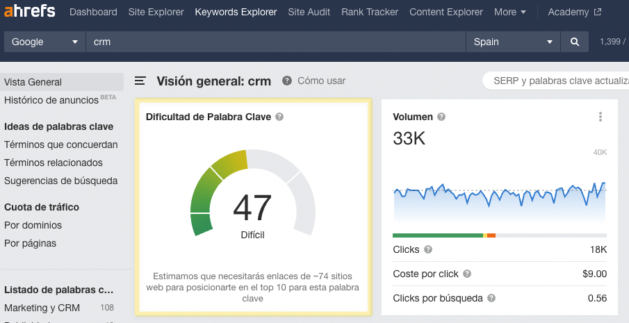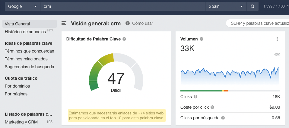 Sin embargo, cuando muchos profesionales SEO usan el término de “dificultad de palabra clave”, se refieren a un concepto más amplio de la dificultad de posicionar, no a una métrica concreta de una herramienta SEO específica.