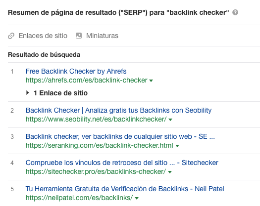 Para estimar de forma adecuada la fortaleza del perfil de enlaces las páginas mejor posicionadas tendrás que revisar todos los links a mano, es decir, hacer una auditoría de backlinks de estas páginas.