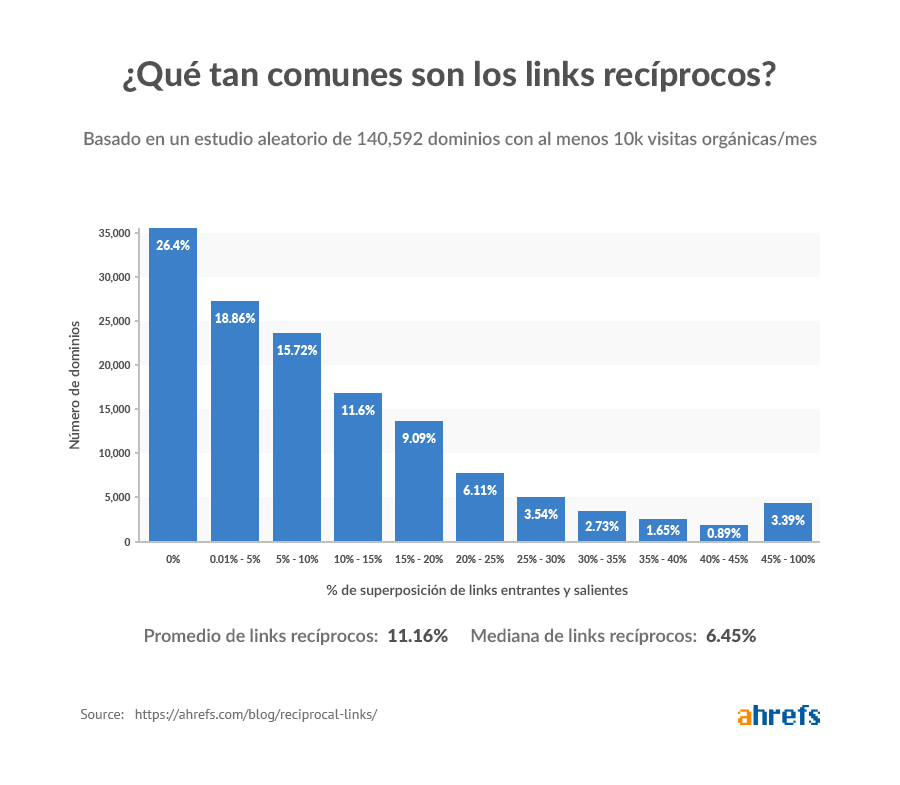 Respecto a los intercambios de enlaces, no son realmente tan malos. Estudiamos la frecuencia de los enlaces recíprocos hace unos pocos años y el 73,6% de los dominios (en nuestra muestra de 140.592) tenía enlaces recíprocos.