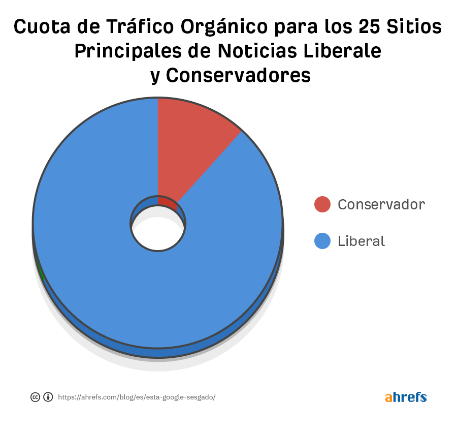 Con sólo los datos de búsqueda de Google, es difícil determinar definitivamente por qué los sitios Liberales obtienen más tráfico que los sitios Conservadores. Puede ser que los Conservadores tiendan a usar Google menos. También es posible que los Conservadores obtengan más noticias de la televisión, las aplicaciones o las redes sociales que de Google. Todo esto puede ser cierto, pero sin datos adicionales, estas afirmaciones no se pueden confirmar y son meras conjeturas.