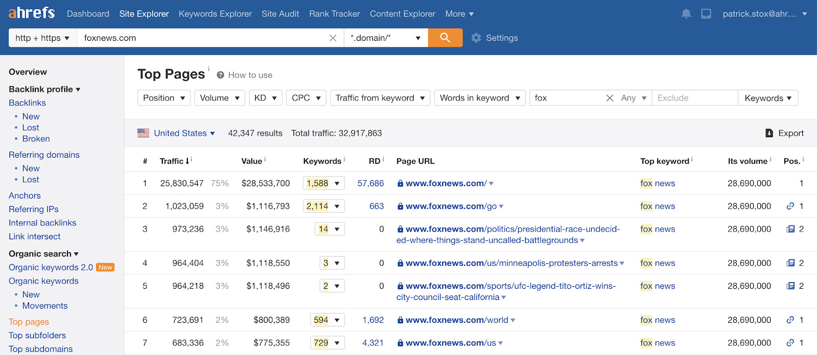 Con nuestro conocimiento experto en optimización de motores de búsqueda (SEO) y la enorme cantidad de datos de Ahrefs, queríamos ver si podíamos identificar algún sesgo de Google al mirar datos de sitios populares de noticias Conservadores y Liberales. Si no estás familiarizado con Ahrefs, somos una de las mejores herramientas SEO con grandes cantidades de datos sobre la web.