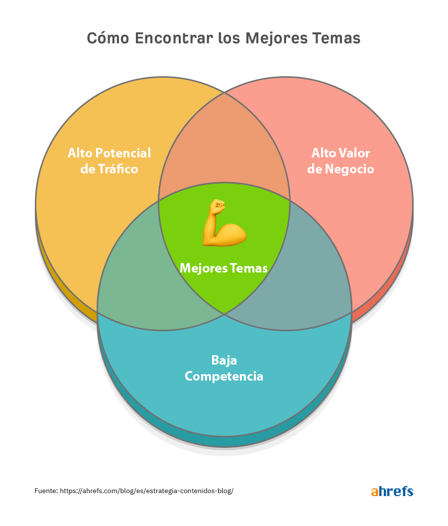 Los mejores temas son aquellos con un elevado potencial de tráfico y valor de negocio y baja competencia: