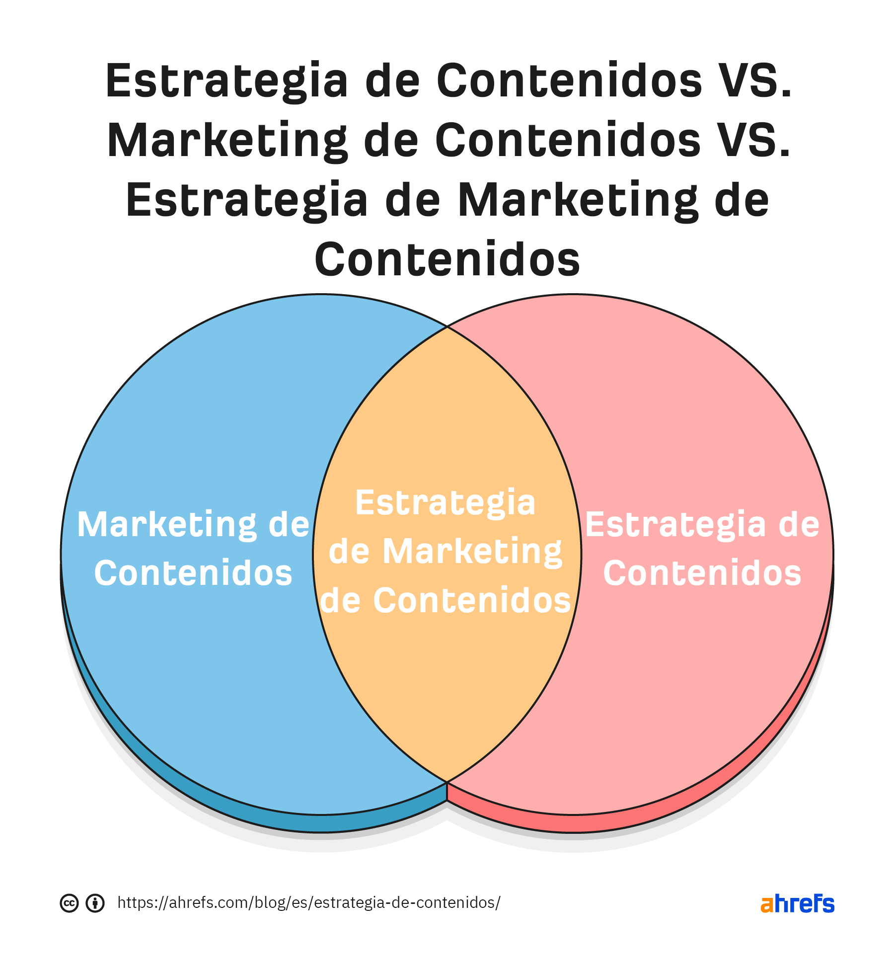Para poner las cosas incluso más confusas, si creas un diagrama de Venn de estrategia de contenidos y marketing de contenidos, la intersección es tu estrategia de marketing de contenidos.