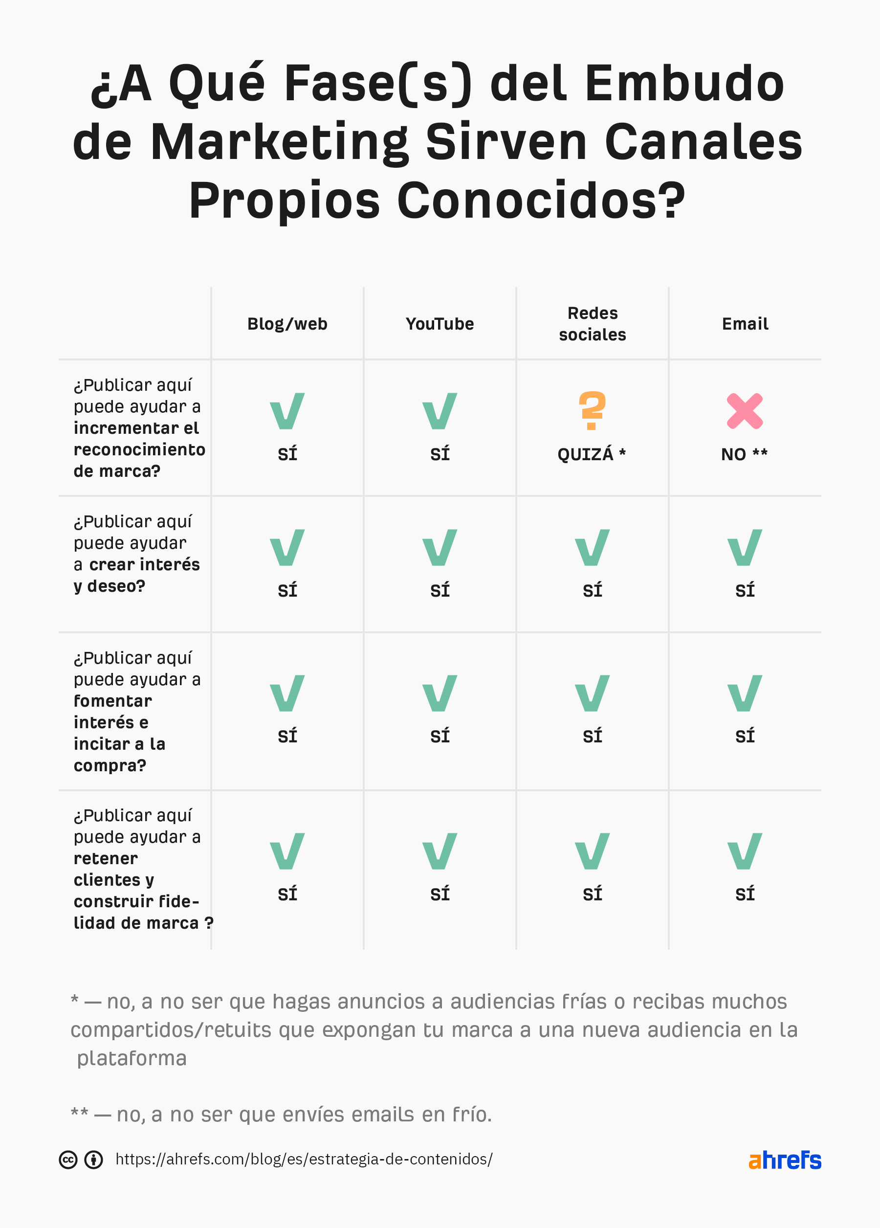 Toda buena estrategia de contenidos supone crear contenido para cada fase del viaje—desde el conocimiento de marca a la retención de cliente—pero no todos los canales de marketing son adecuados para resolver todos los problemas.