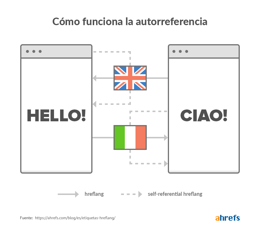 Google afirma que “en cada versión de idioma de una página, deben incluirse todas las versiones de idioma de esa página, incluida la propia versión”. Explicado en lenguaje llano esto significa que cada página debería tener una etiqueta hreflang autorreferente—es decir, que se apunte a sí misma.