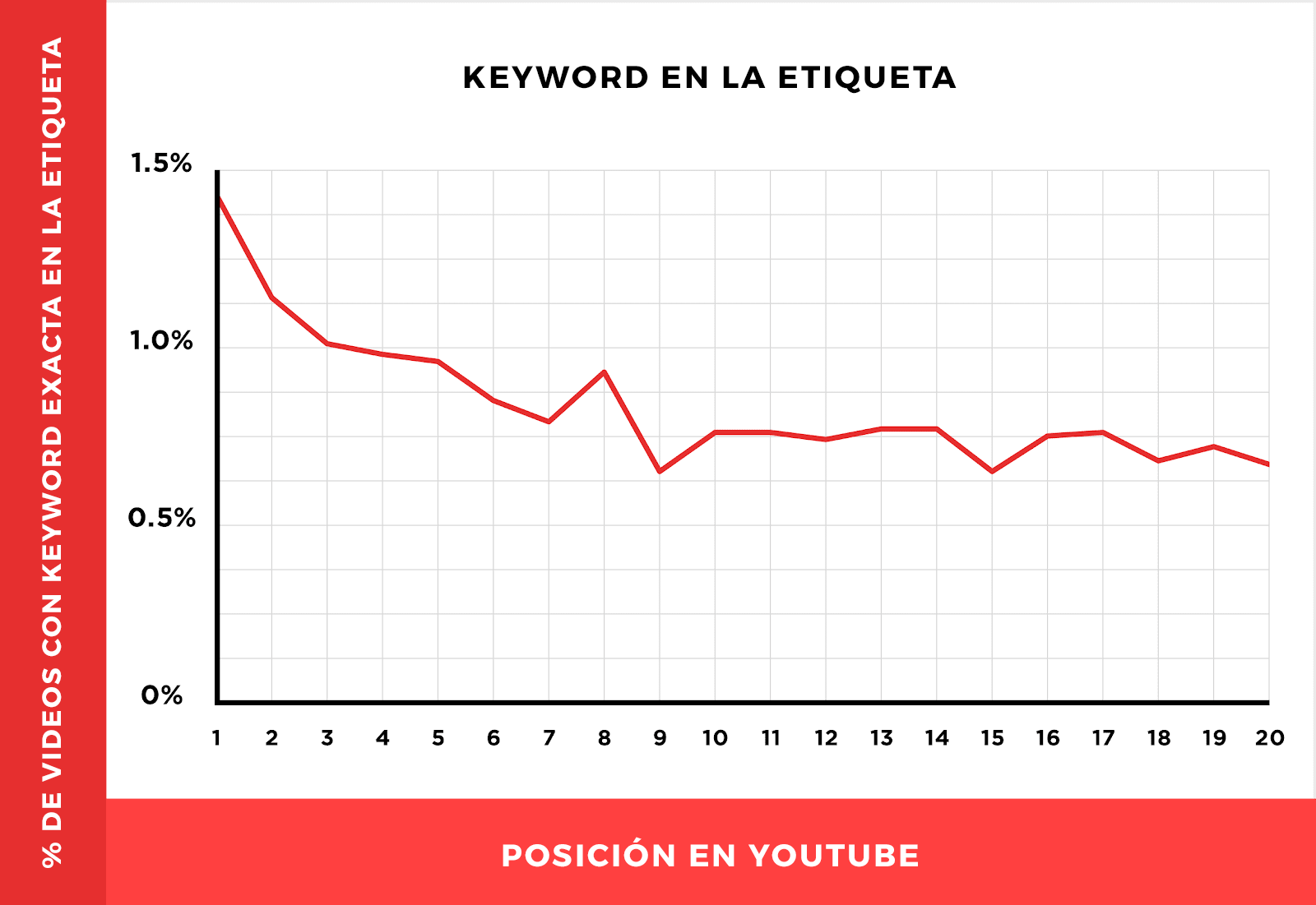 Este estudio de 1.3 millones de videos de YouTube encontró una pequeña relación entre los rankings y la presencia de la palabra clave en las etiquetas del video.