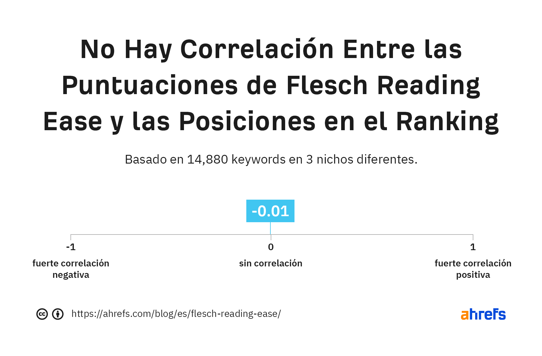 Esto está respaldado por nuestro estudio de 15.000 palabras clave, que encontró virtualmente cero correlación entre posicionamiento y puntuaciones FRE.