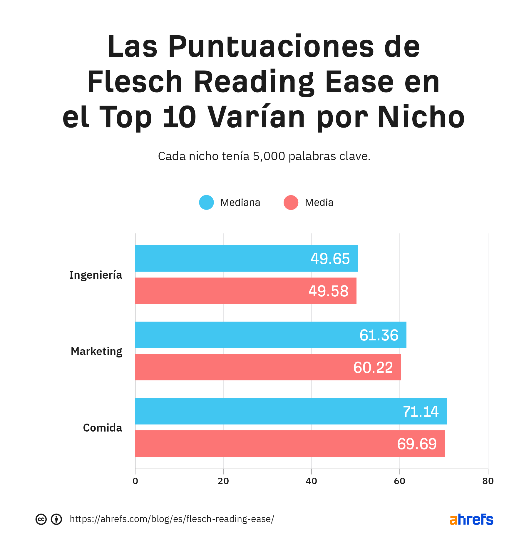 Comida (tema sencillo): 69.7 de media, es decir, bastante fácil de leer