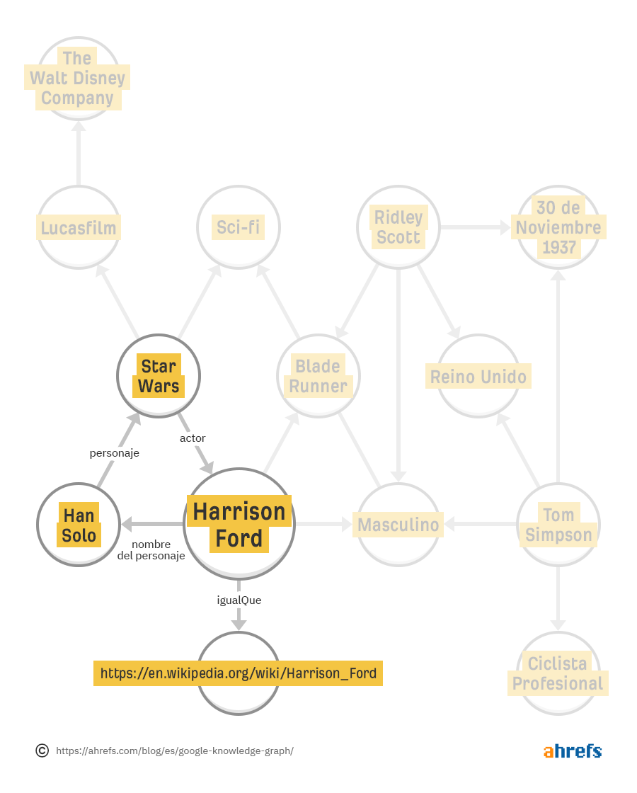 Dado que “Han Solo” y “Star Wars” son entidades estrechamente conectadas en el Gráfico de conocimiento, es fácil para Google obtener la respuesta que está buscando.