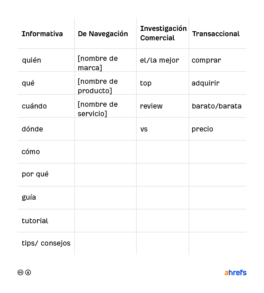 A menudo puedes ver en qué categoría encaja tu keyword buscando modificadores de keyword en la consulta. Si contiene palabras como “comprar” o “barato”, es más probable que sea una consulta transaccional. Si contiene palabras como “cómo”, “qué” o “dónde”, es probablemente informativa.