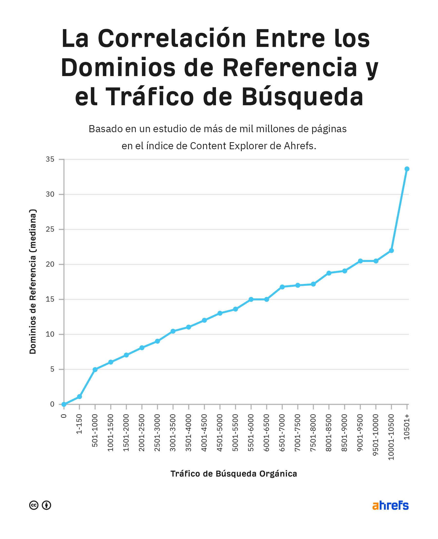 En primer lugar, como los enlaces son uno de los tres factores principales de posicionamiento en Google, las páginas con más enlaces suelen posicionarse mejor y recibir más tráfico. Nuestro estudio de más de 1.000 millones de páginas lo confirma.