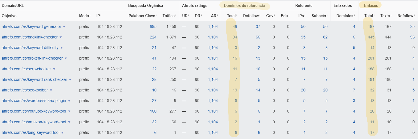 Cada una de estas herramientas tiene una cifra significativa de enlaces: