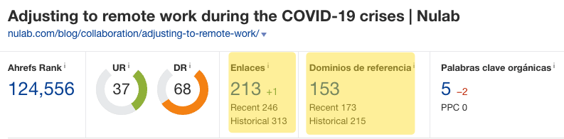 En el caso de Nulab, no solo les generó 213 enlaces desde 153 webs distintas…