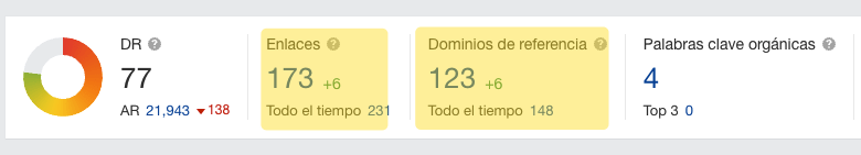 Consiguió una respetable cantidad de 173 enlaces de 123 dominios de referencia: