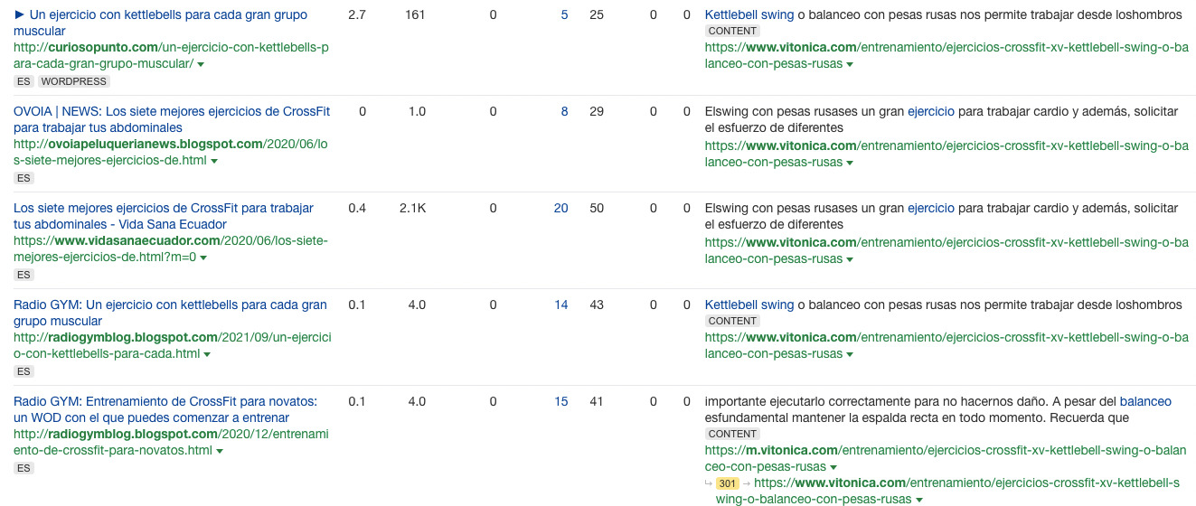 Por ejemplo, si hacemos esto con el post de Vitónica sobre cómo hacer kettlebell swing, vemos que algunas personas que lo enlazan lo hicieron porque el artículo mencionaba los beneficios y la técnica: