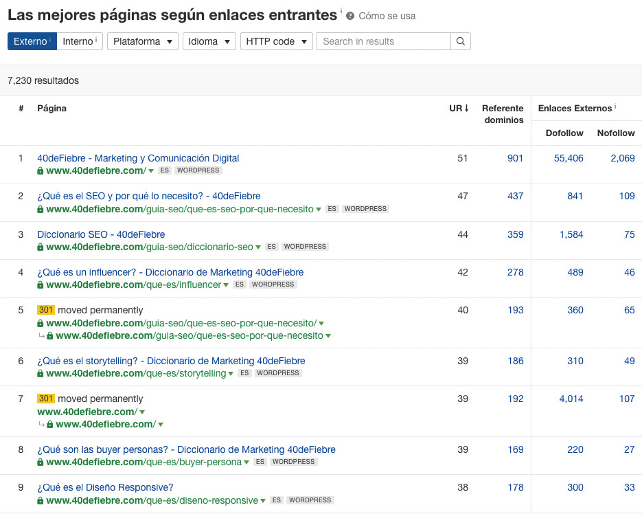 Generó más de 1.000 enlaces de 305 dominios de referencia.