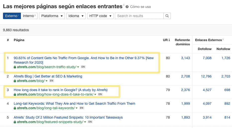 Mientras que si analizamos nuestro propio blog, vemos que los estudios basados en datos son los más populares en el espacio SEO: