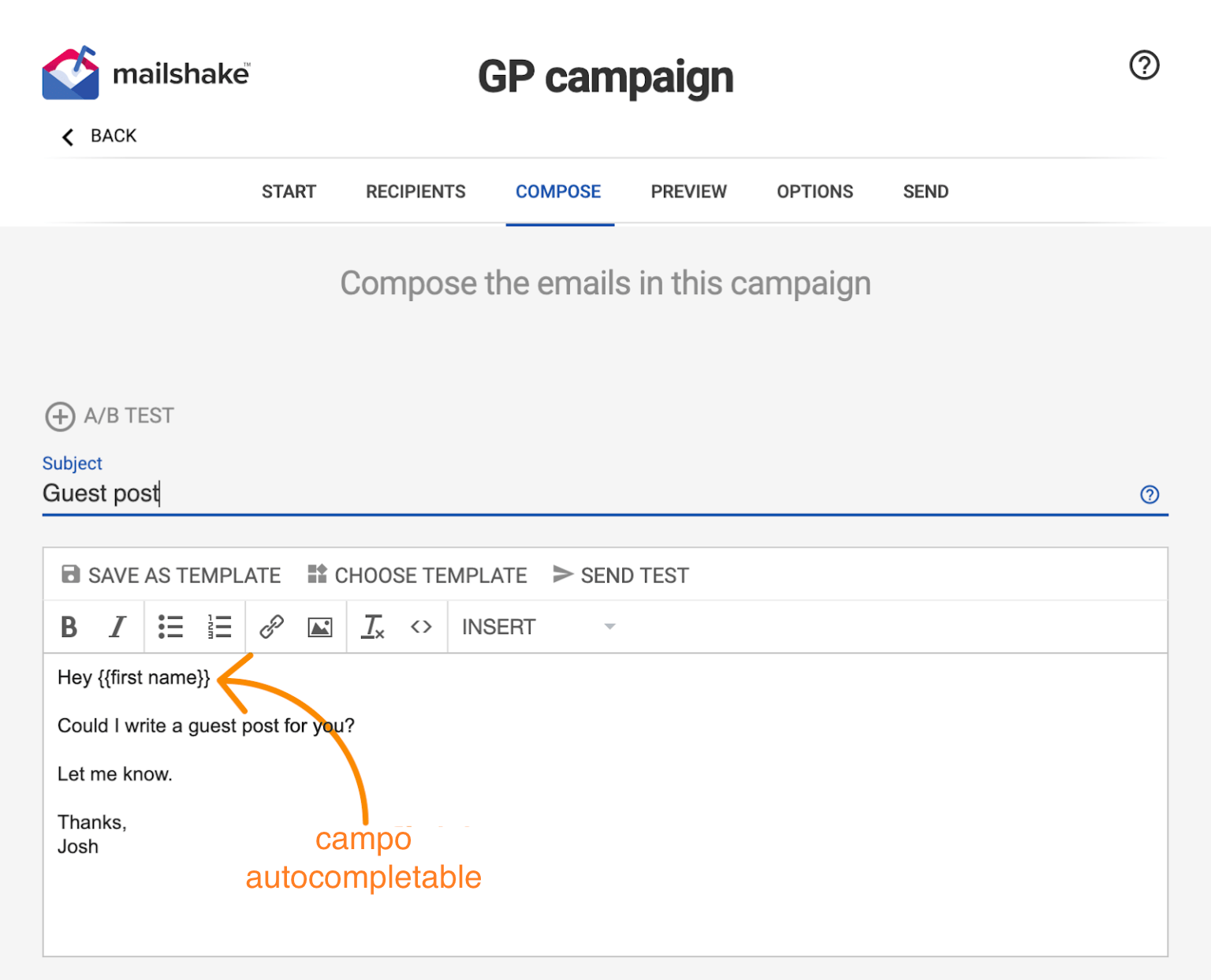 Para mantener las cosas simples, vamos a elegir una campaña de guest posting.