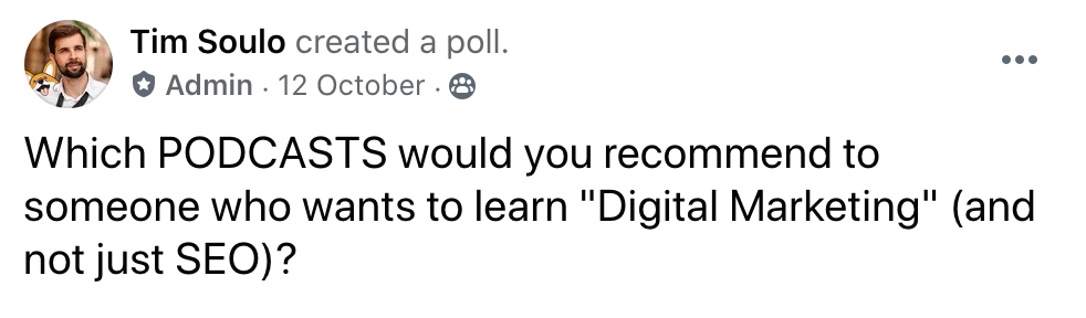 En parte, esto es casi seguro porque realizamos la encuesta en un grupo lleno de profesionales de SEO. Pero también es porque los anfitriones -Gael y Mark- no se detienen cuando se trata de compartir consejos sobre link building, marketing de afiliados y SEO.