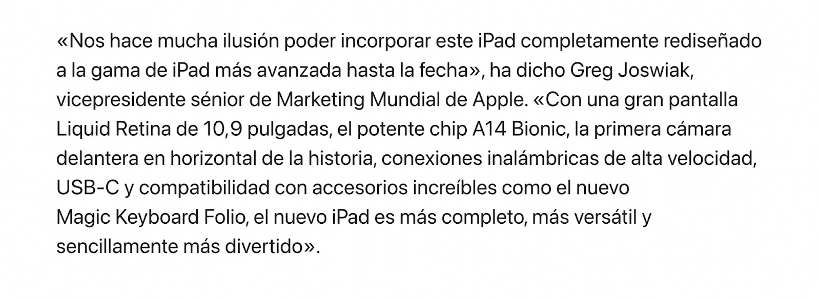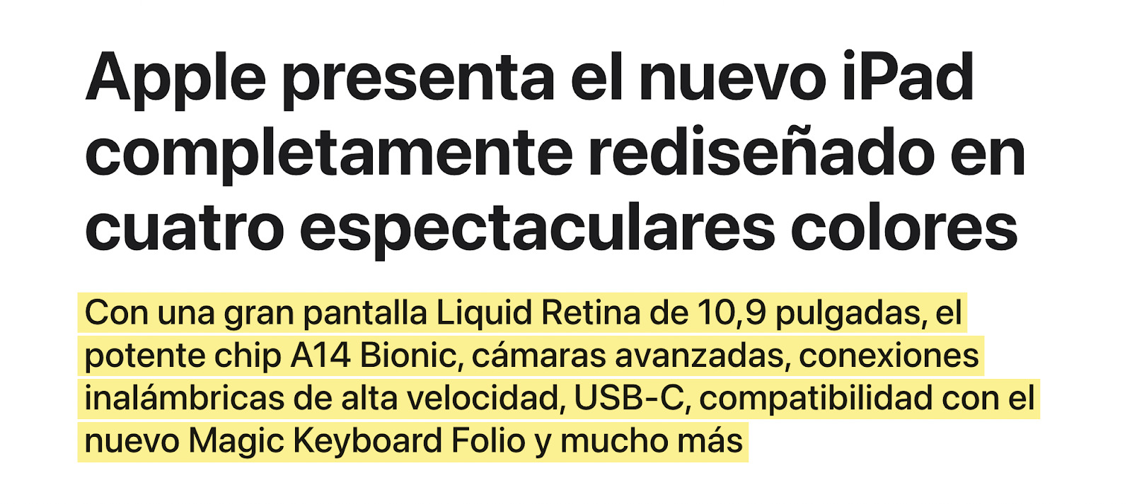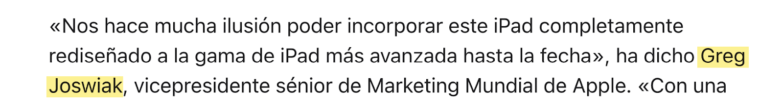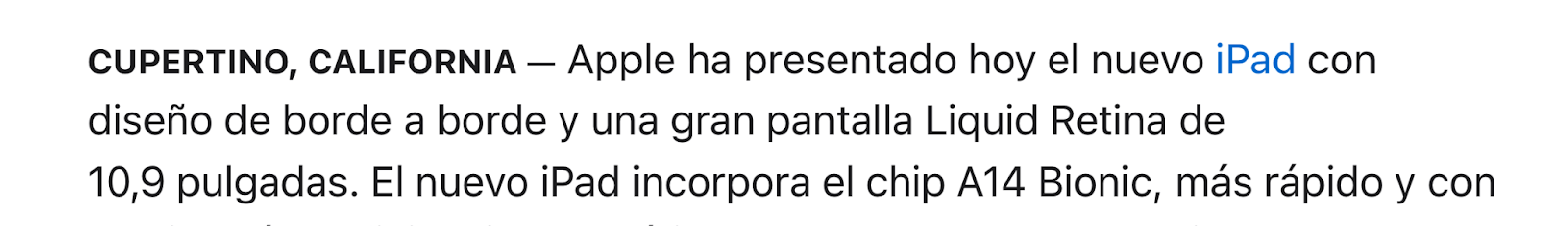 Volvamos a nuestro ejemplo anterior de esta nota de prensa de Apple.