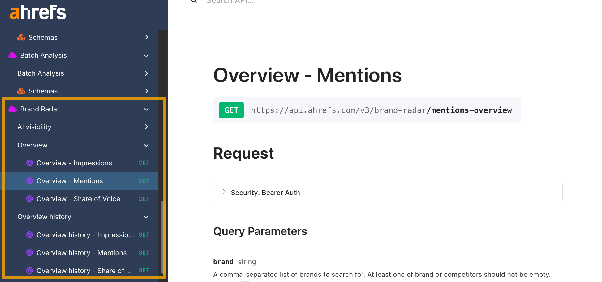 Hemos añadido nuevos endpoints a la Brand Radar API, incluida la distribución de menciones por plataformas de IA y datos de series temporales para Menciones e Impresiones, con los mismos filtros disponibles en la interfaz.