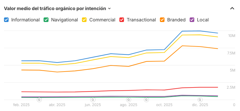 Tráfico por intención a lo largo del tiempo