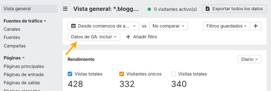 Si tu cuenta de Google está vinculada a un proyecto, importaremos datos históricos de Google Analytics de antes de que empezara el tracking nativo de Web Analytics, para que tus informes no empiecen desde cero.