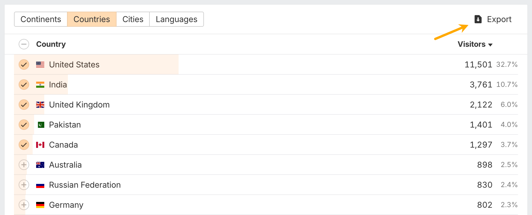 Ahora es posible exportar datos desde cualquier informe individual de Web Analytics, ideal para compartir hallazgos o guardar capturas