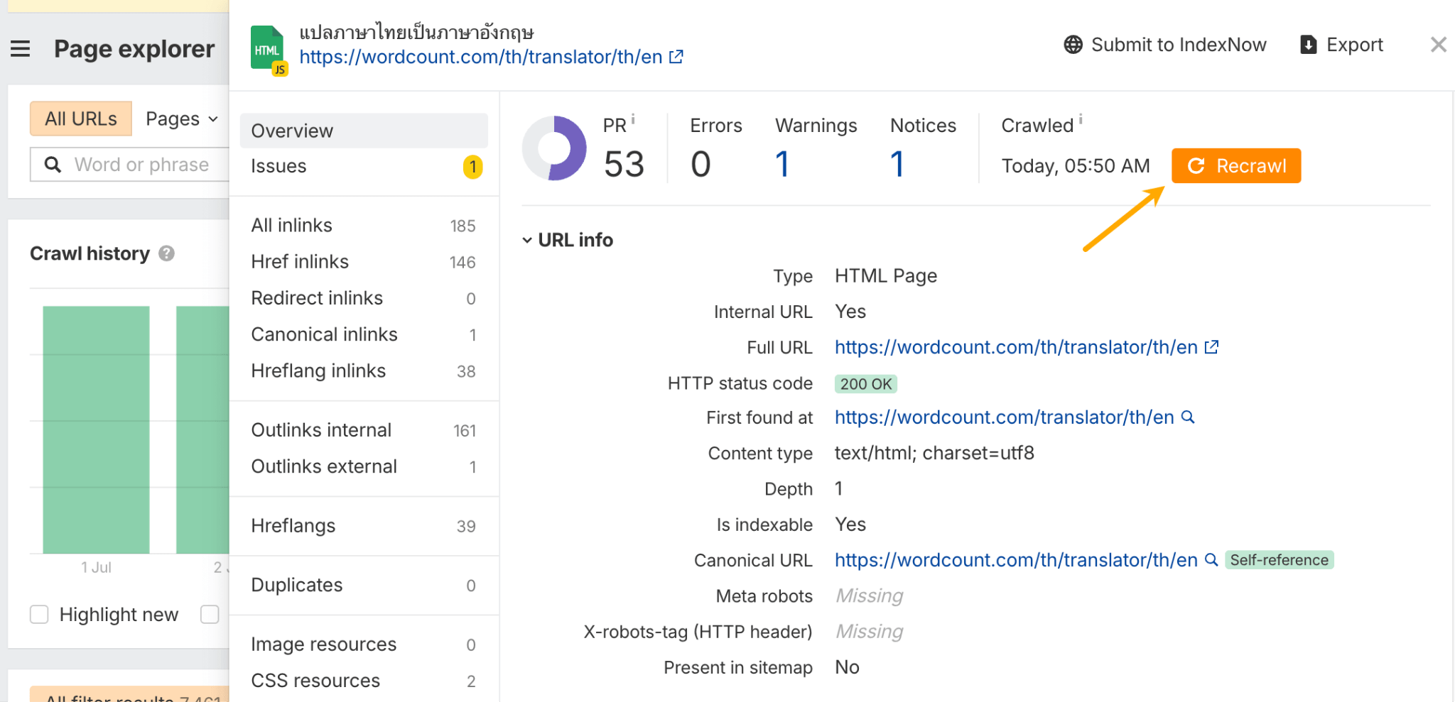Si tienes un Always-on Audit activo, ahora puedes volver a rastrear cualquier página al instante con un solo clic. ¡Perfecto para probar cambios y correcciones!