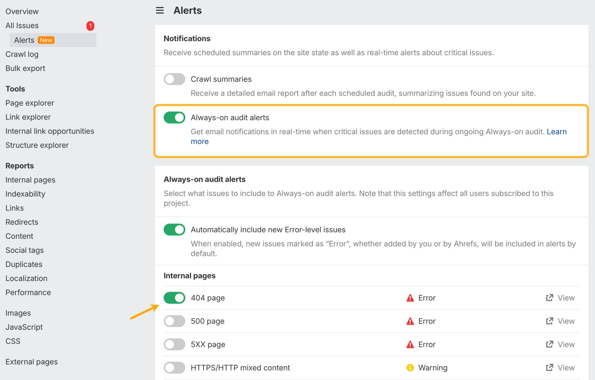 - ¿Quieres alertas solo para problemas de indexabilidad? Actívalas.