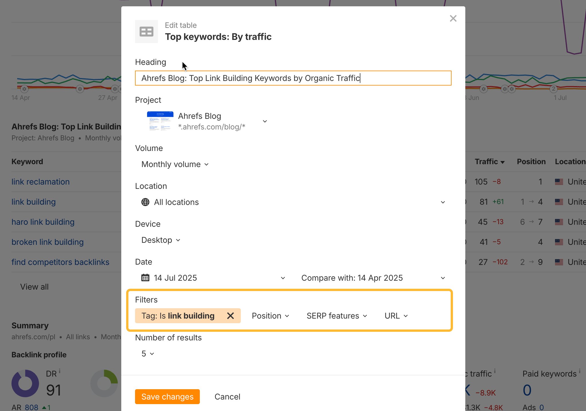 Este sistema de filtros ya está activo en Site Explorer, widgets de Rank Tracker en Report Builder y en Competitive Analysis.