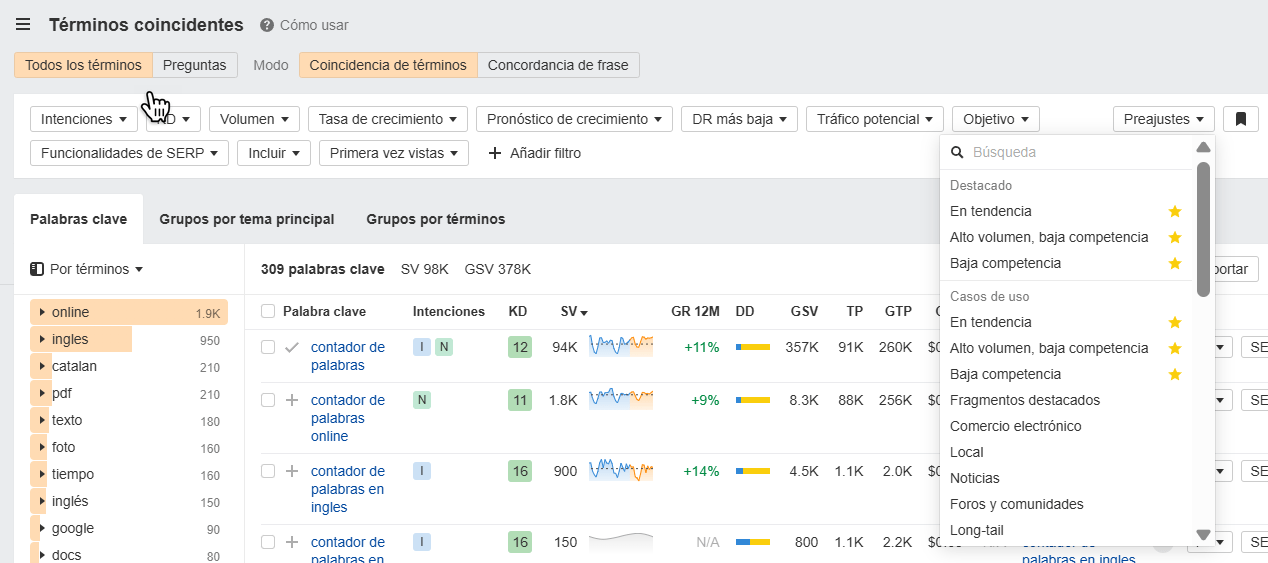 ¿Quieres ver en qué destacan tus competidores y tu marca no? Solo tienes que aplicar estos filtros: