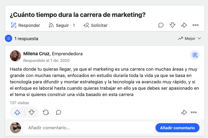 Por ejemplo, estaba navegando por el tema “marketing” en Quora y vi este post: